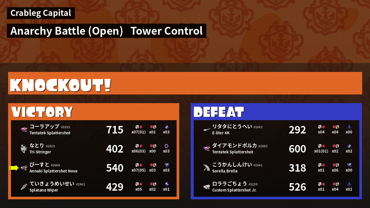 | Mode | Tower Control - Anarchy Battle (Open) | ||