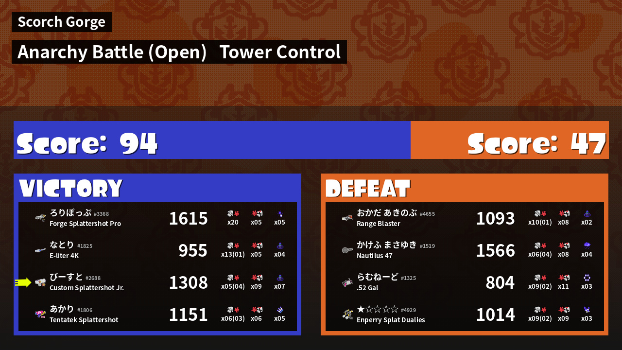 | Mode | Tower Control - Anarchy Battle (Open) | ||