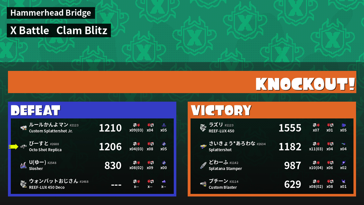 | Medals | #1 Splat Assister #1 Ground Traveler #2 Clam Carrier | ||