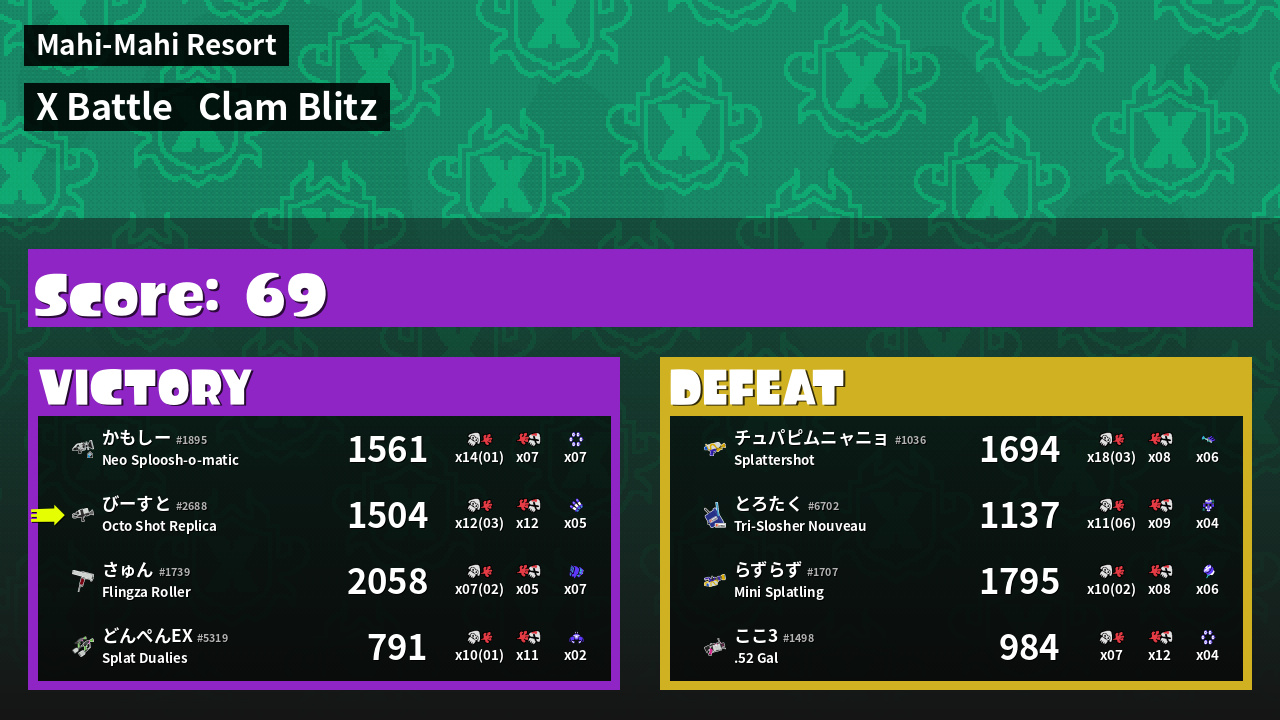 | Mode | Clam Blitz - X Battle | ||