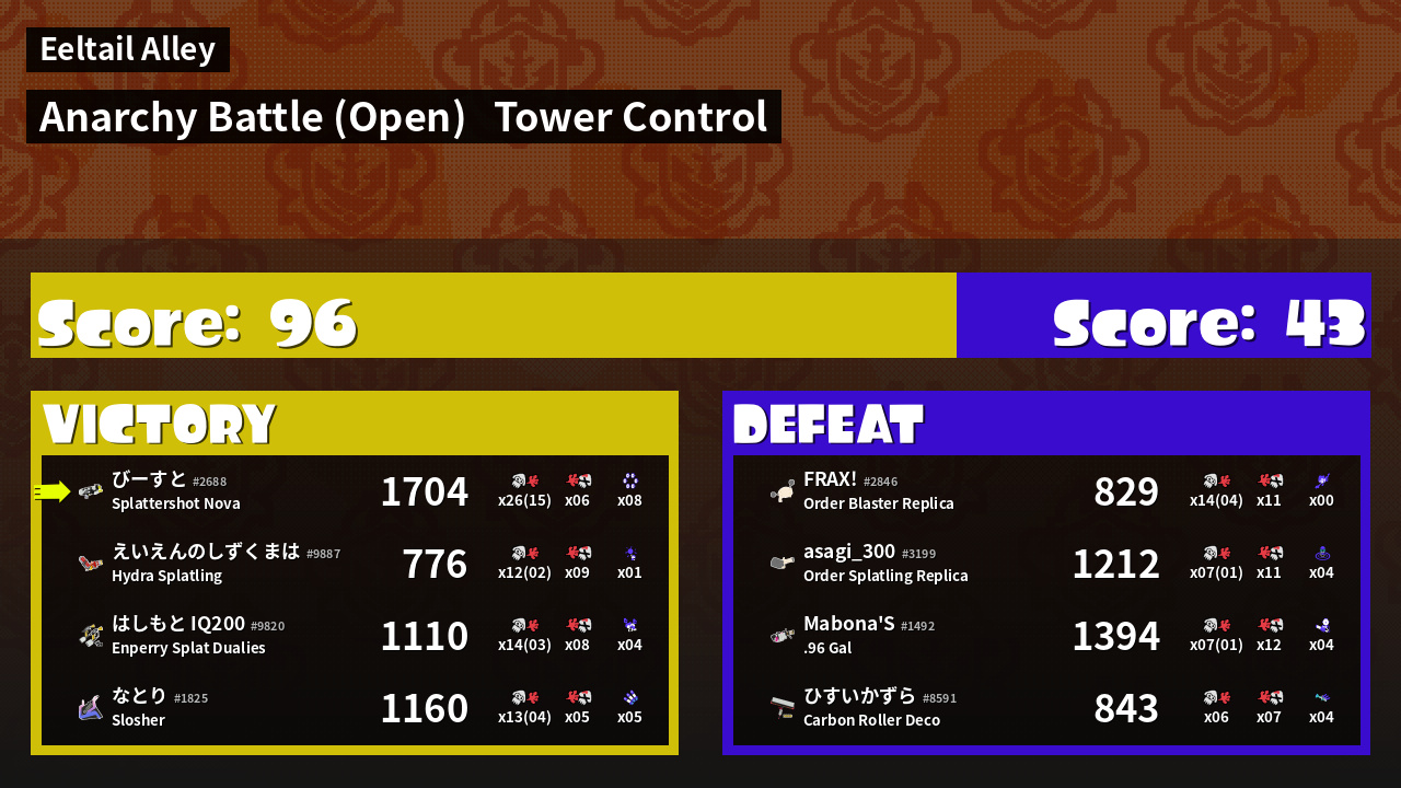 | Mode | Tower Control - Anarchy Battle (Open) | ||