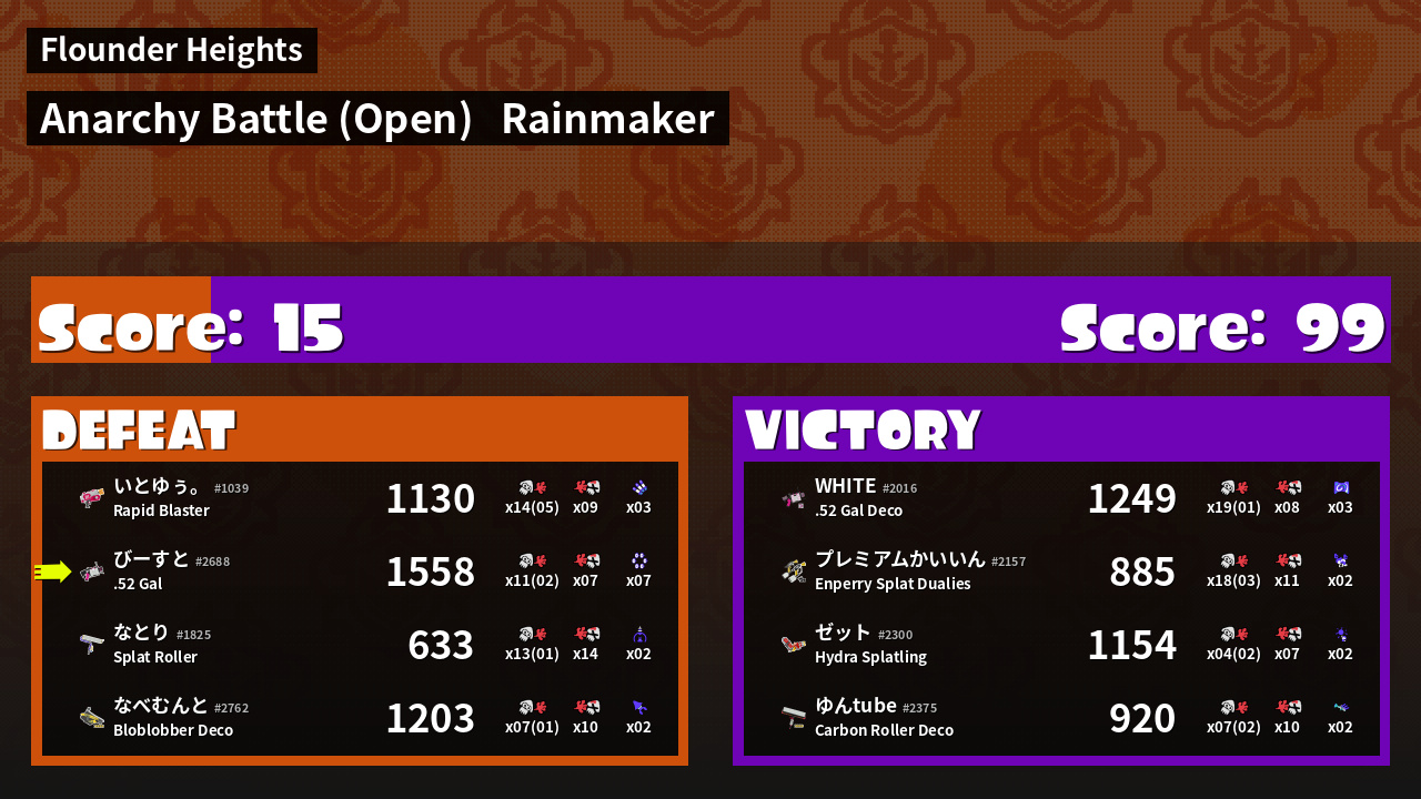 | Mode | Rainmaker - Anarchy Battle (Open) | ||