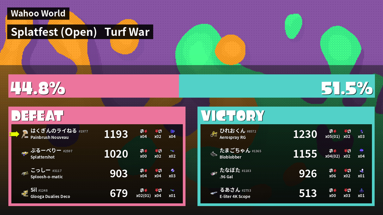 | Medals | #1 Overall Splatter #1 Turf Inker #1 Enemy-Base Inker | ||