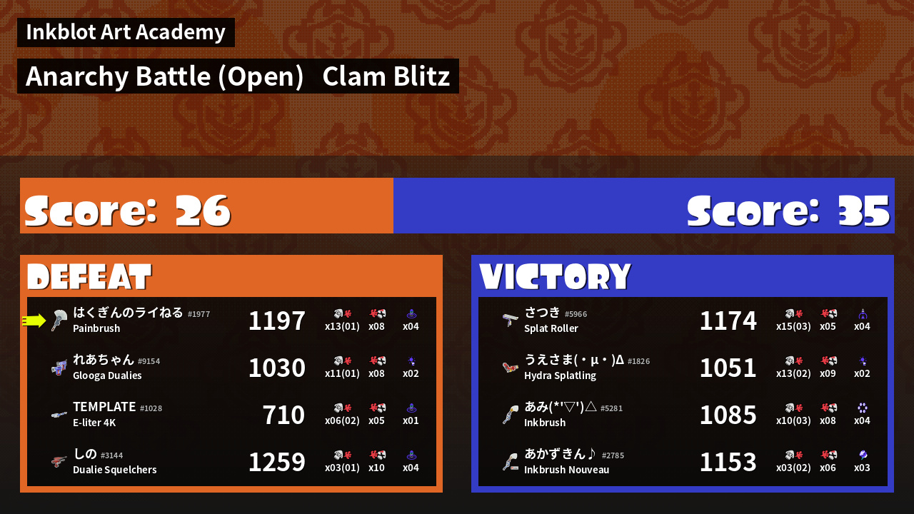 | Mode | Clam Blitz - Anarchy Battle (Open) | ||