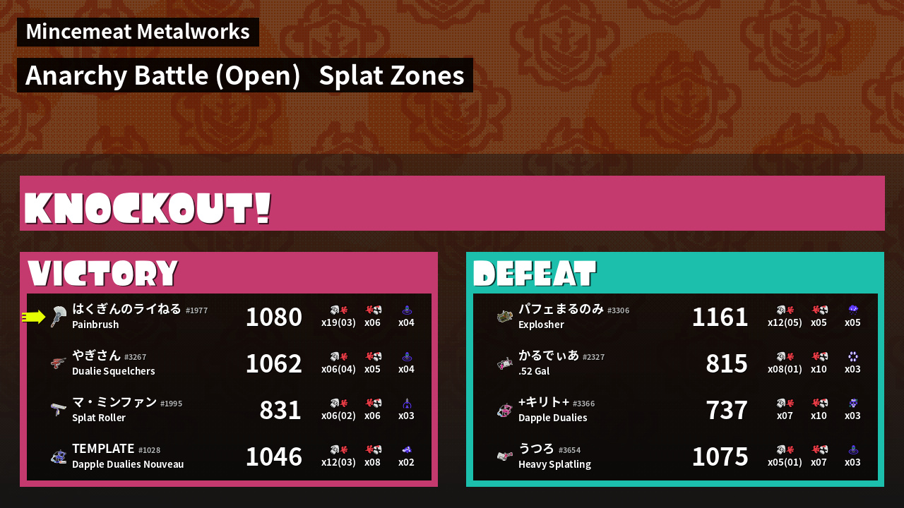 | Mode | Splat Zones - Anarchy Battle (Open) | ||