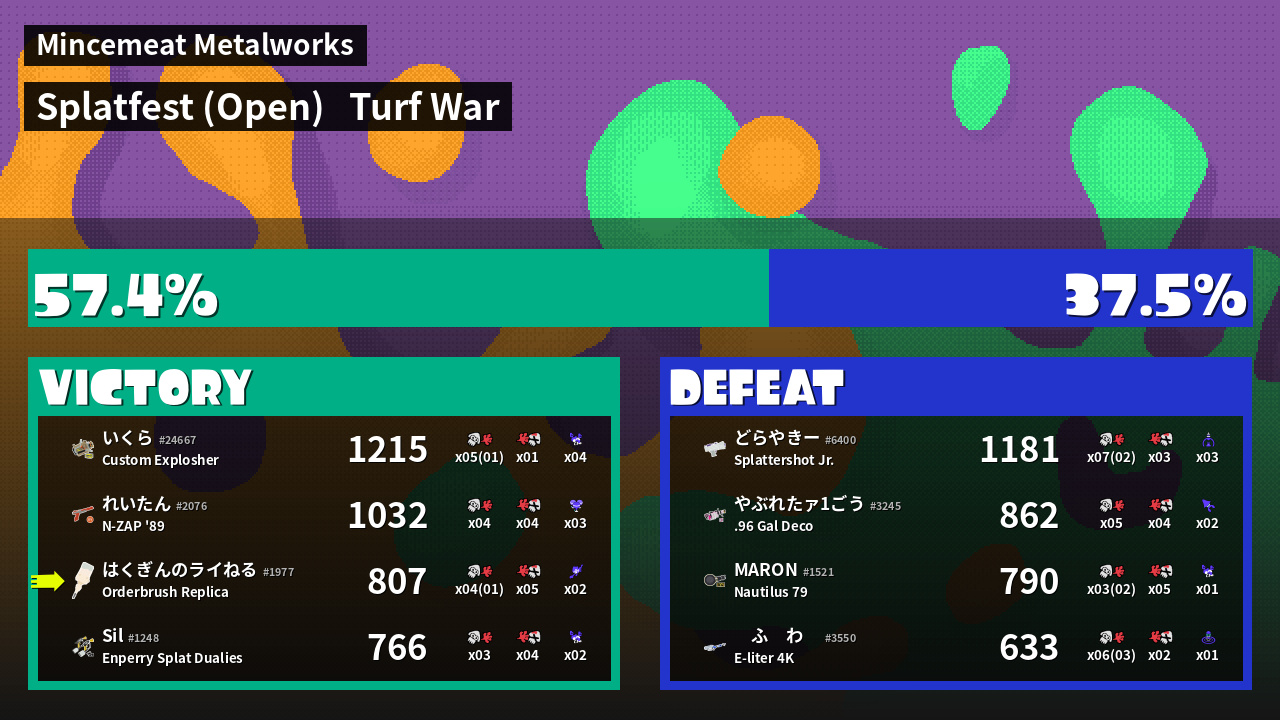 | Medals | #1 Enemy-Base Inker #1 Splat Assister #1 Ground Traveler | ||