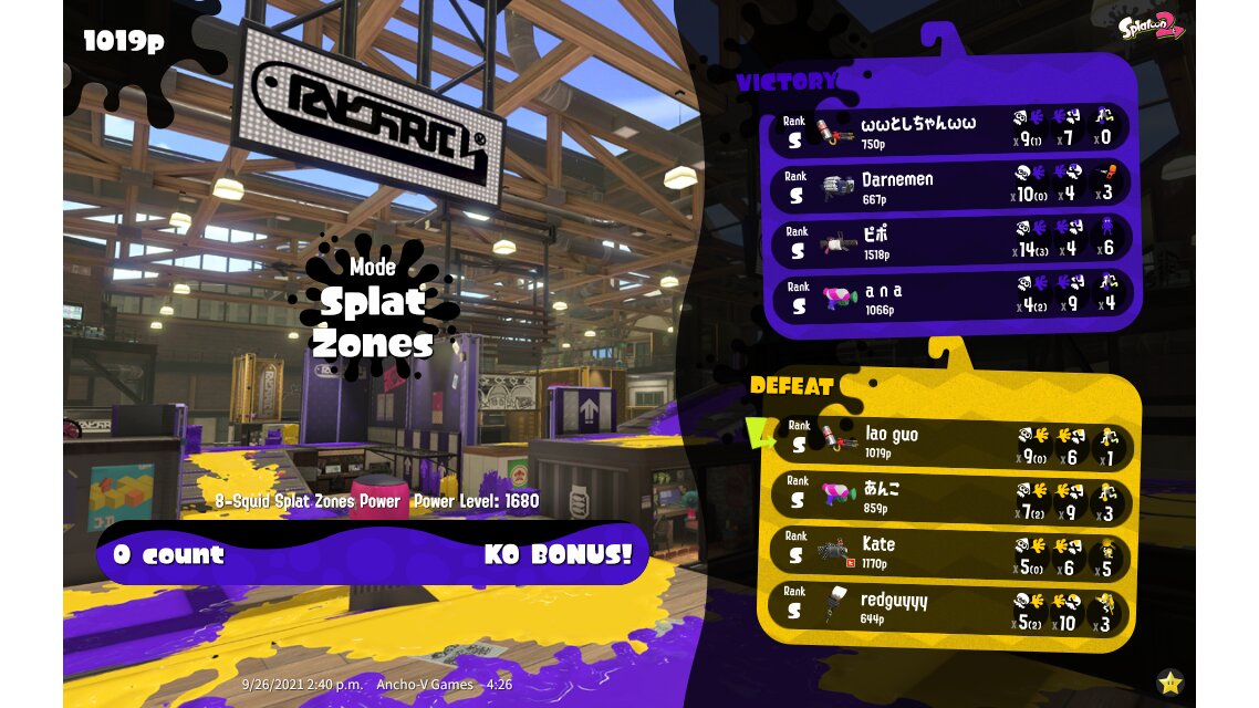| Mode | Splat Zones - Ranked Battle | |||||||||||||||||||||||||||||||||||||