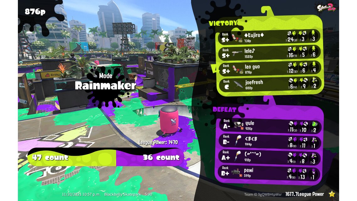 | SplatNet Battle # | 1,321 | ||||||||||||||||||||||||||||||||||||||||