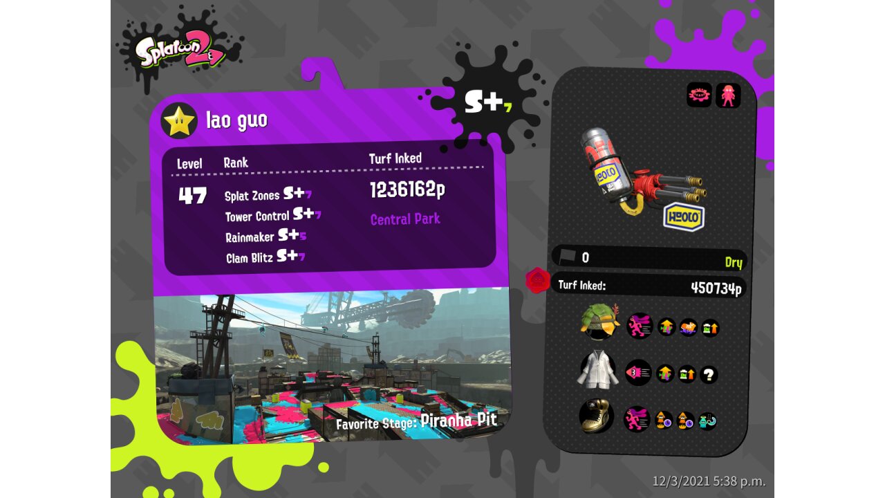 | Name | Weapon | Level | Rank | Inked | k+a/sp | k/d |