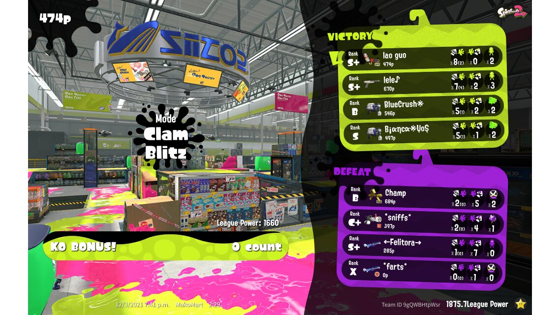 | Mode | Clam Blitz - League Battle (Twin) | |||||||||||||||||||||||||||||||||||||||||||