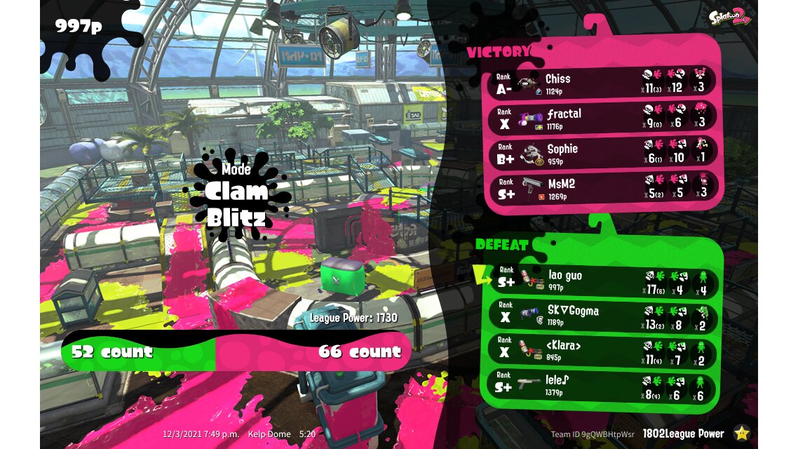 | Mode | Clam Blitz - League Battle (Twin) | |||||||||||||||||||||||||||||||||||||||||||