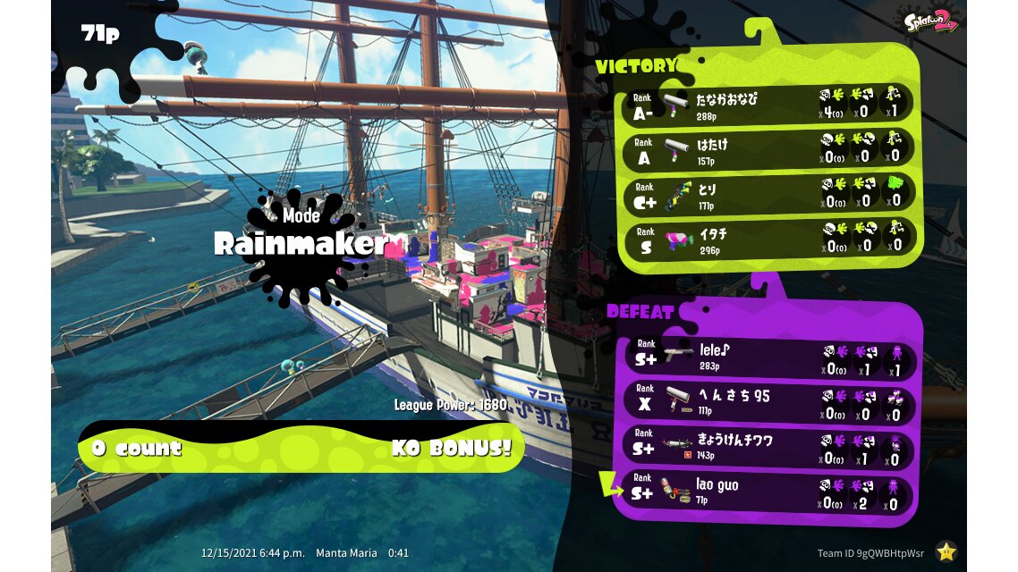 | Mode | Rainmaker - League Battle (Twin) | ||||||||||||||||||||||||||||||||||||||||