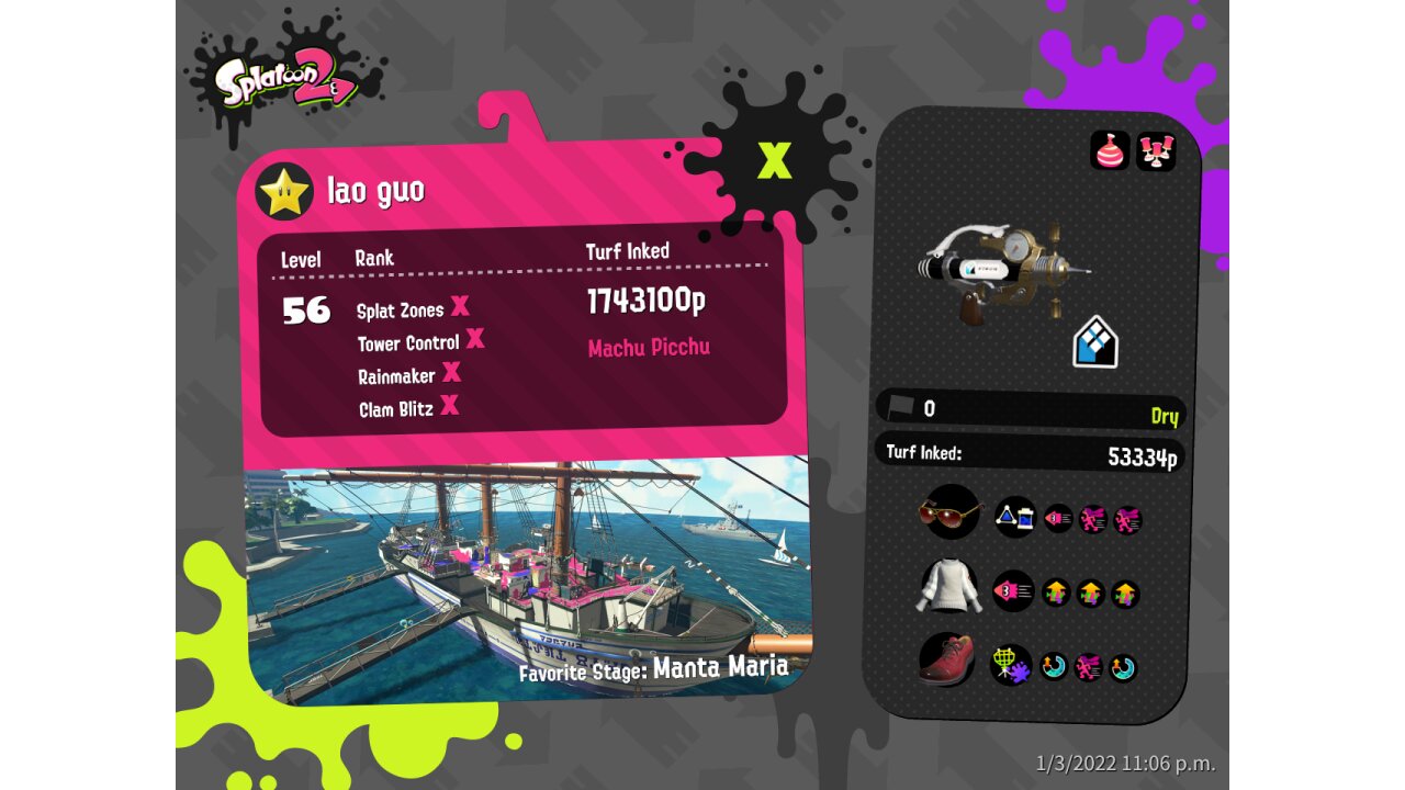 | Name | Weapon | Level | Rank | Inked | k+a/sp | k/d |
