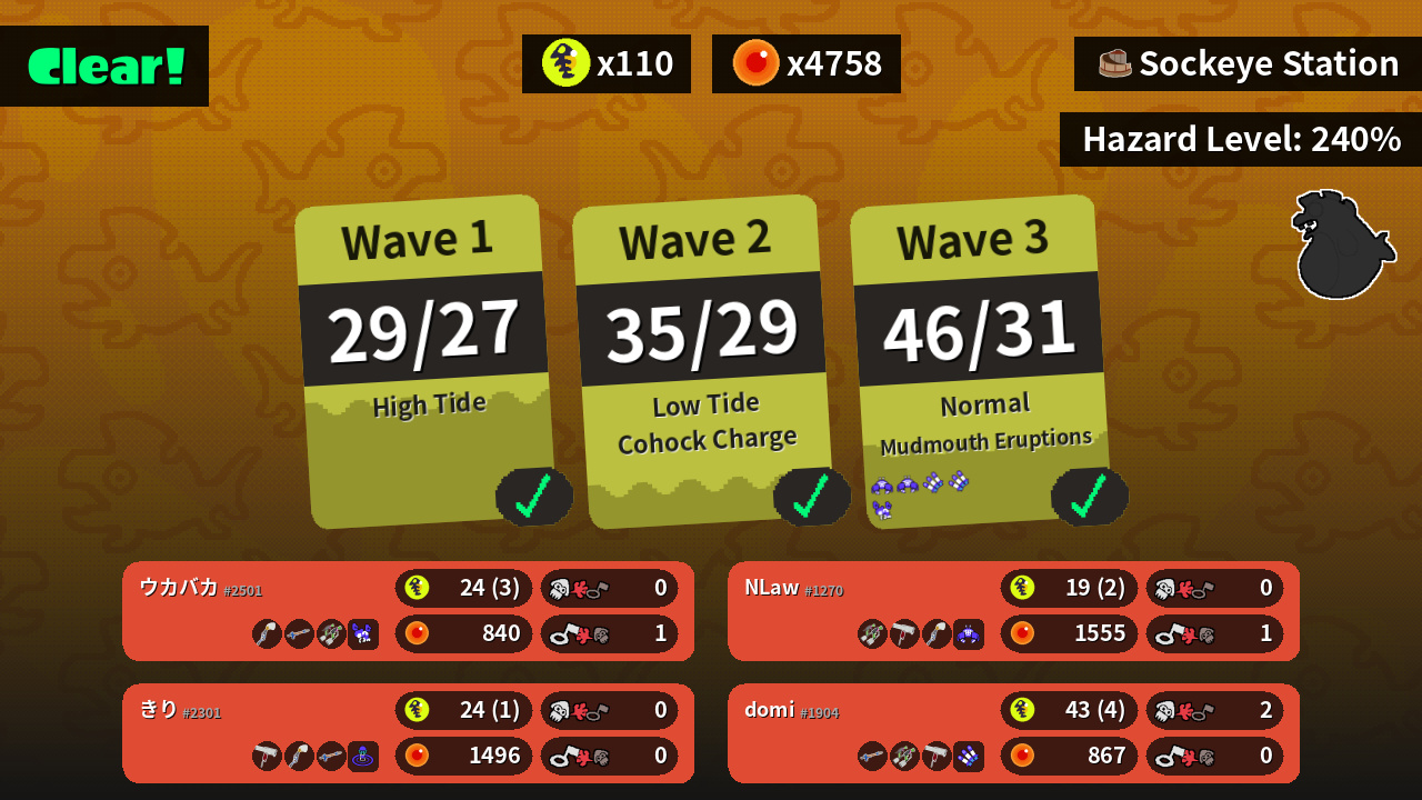 | Special | Triple Splashdown (1) | Triple Inkstrike (2) | Wave Breaker (0) | Crab Tank (2) |