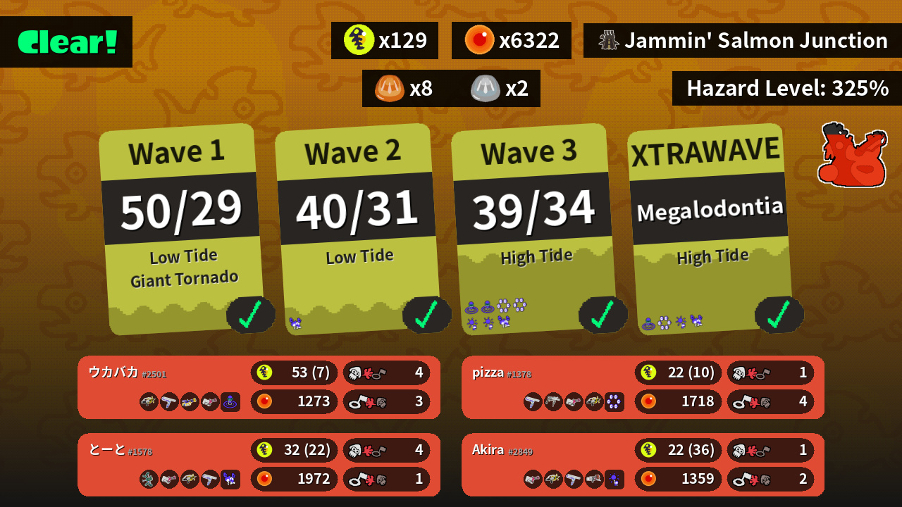 | Weapons | Splash-o-matic Big Swig Roller Mini Splatling Heavy Splatling | Wellstring V Heavy Splatling Splash-o-matic Big Swig Roller | Big Swig Roller Grizzco Roller Heavy Splatling Splash-o-matic | Heavy Splatling Splash-o-matic Big Swig Roller Blaster |