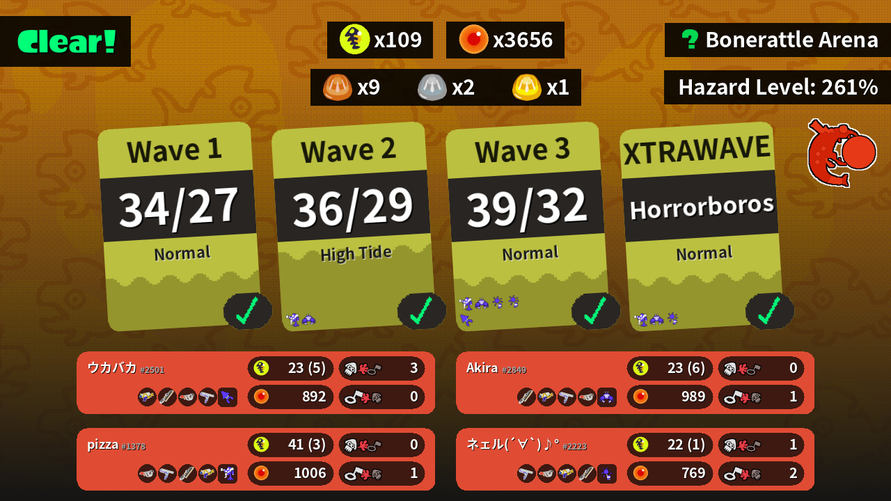 | Weapons | Splattershot Splatana Wiper Goo Tuber Big Swig Roller | Goo Tuber Big Swig Roller Splatana Wiper Splattershot | Splatana Wiper Splattershot Big Swig Roller Goo Tuber | Big Swig Roller Goo Tuber Splattershot Splatana Wiper |