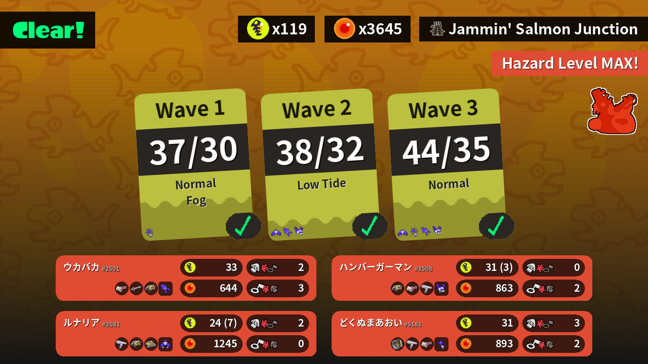 | Weapons | Heavy Splatling Snipewriter 5H Splash-o-matic | Grizzco Slosher Big Swig Roller Heavy Splatling | Splash-o-matic Heavy Splatling Big Swig Roller | Big Swig Roller Splash-o-matic Dread Wringer |