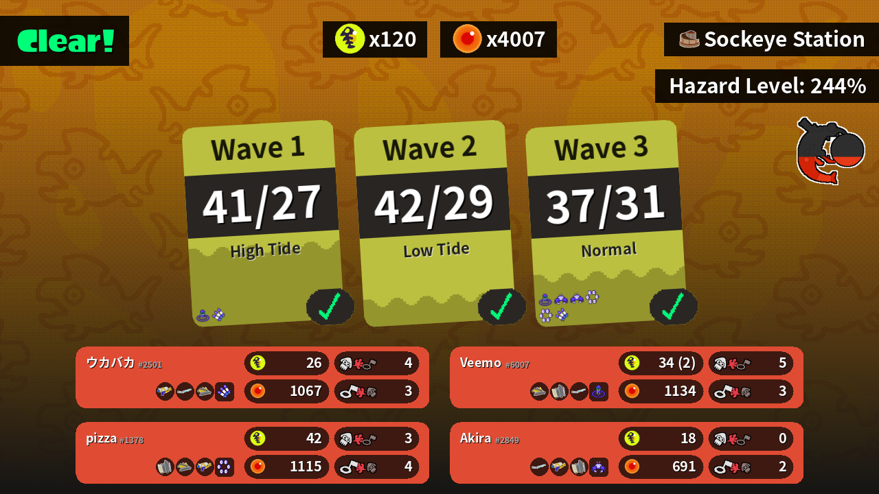 | Weapons | Splattershot Classic Squiffer Dread Wringer | Sloshing Machine Dread Wringer Splattershot | Dread Wringer Sloshing Machine Classic Squiffer | Classic Squiffer Splattershot Sloshing Machine |