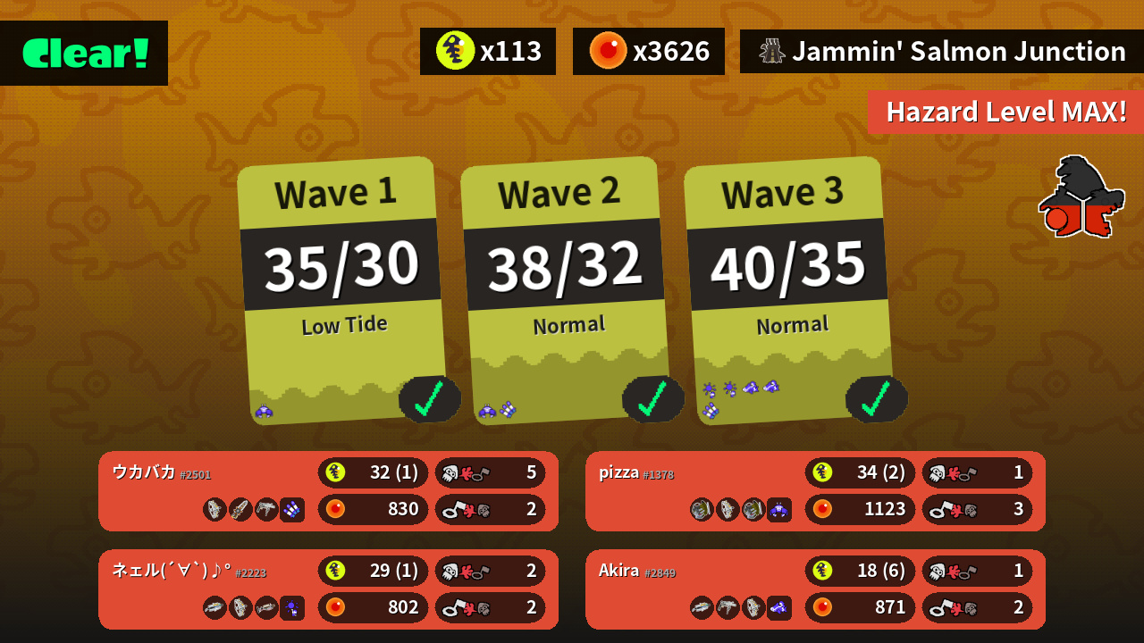 | Weapons | Grizzco Stringer Grizzco Splatana Grizzco Roller | Grizzco Slosher Grizzco Stringer Grizzco Slosher | Grizzco Brella Grizzco Stringer Grizzco Charger | Grizzco Brella Grizzco Roller Grizzco Stringer |