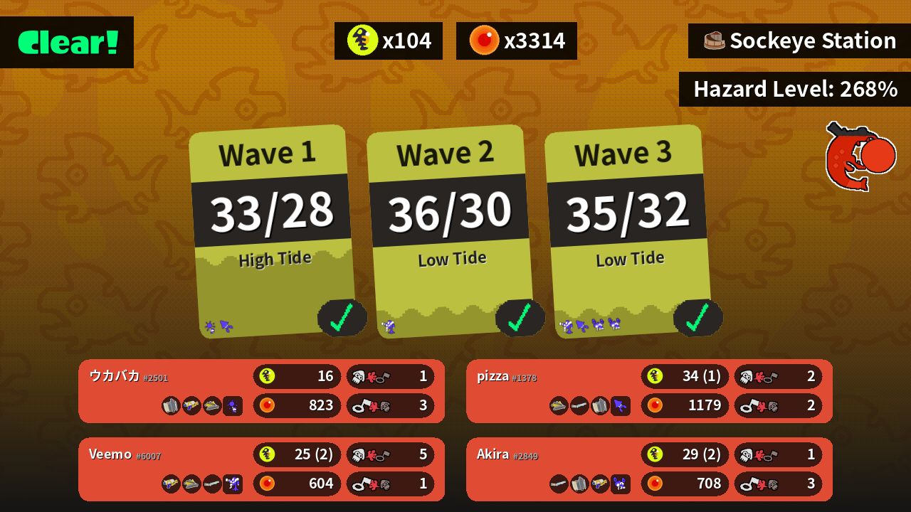 | Weapons | Sloshing Machine Splattershot Dread Wringer | Dread Wringer Classic Squiffer Sloshing Machine | Classic Squiffer Sloshing Machine Splattershot | Splattershot Dread Wringer Classic Squiffer |