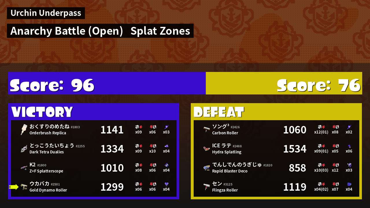 | Mode | Splat Zones - Anarchy Battle (Open) | ||