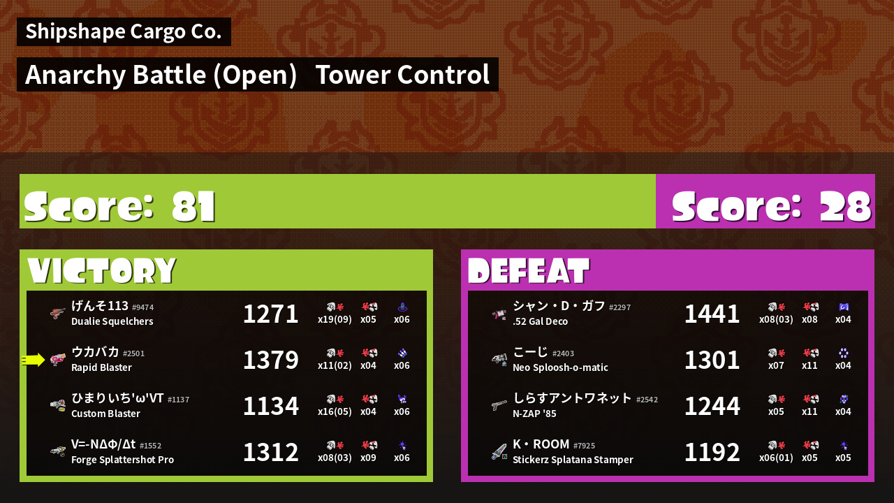 | Mode | Tower Control - Anarchy Battle (Open) | ||