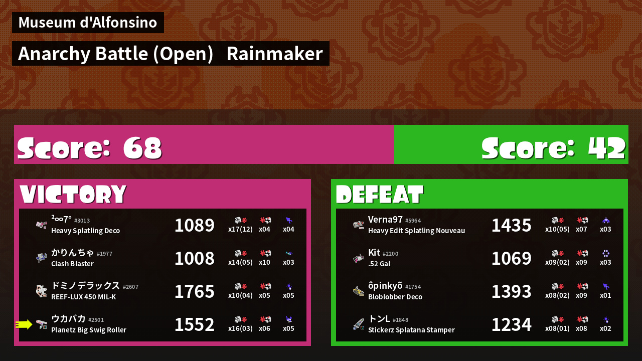 | 厚實的美女  Verna97 #5964 |  Heavy Edit Splatling Nouveau                    | 1,435 | 5 + 5 | 7 | 0.71 |  3 | |
