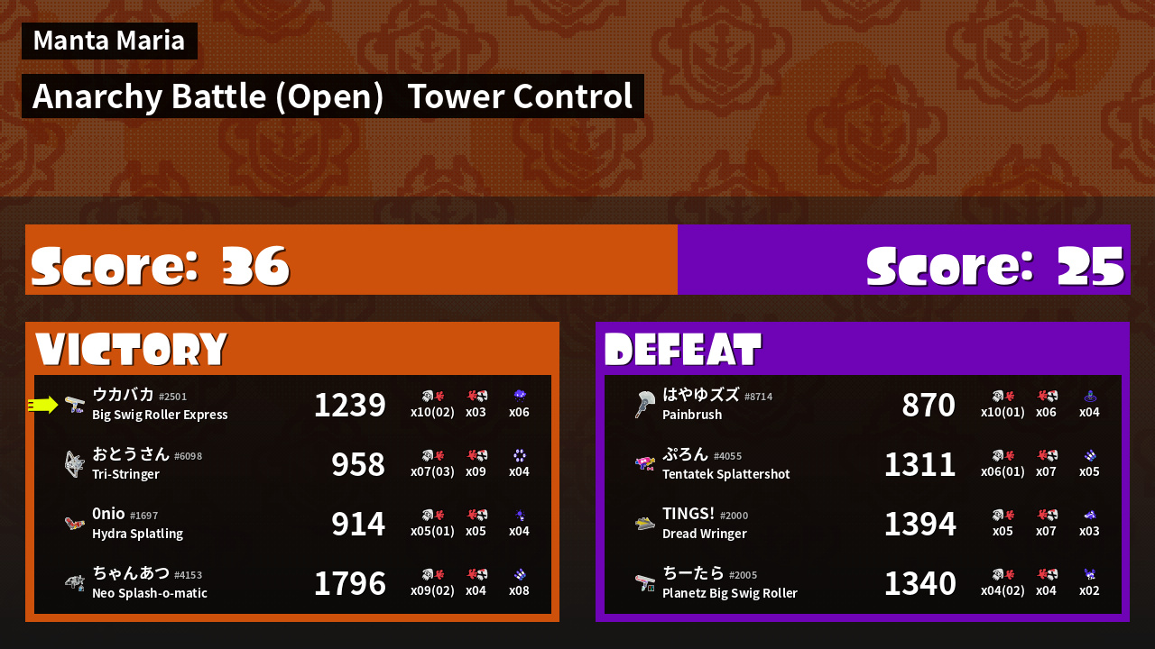 | Mode | Tower Control - Anarchy Battle (Open) | ||