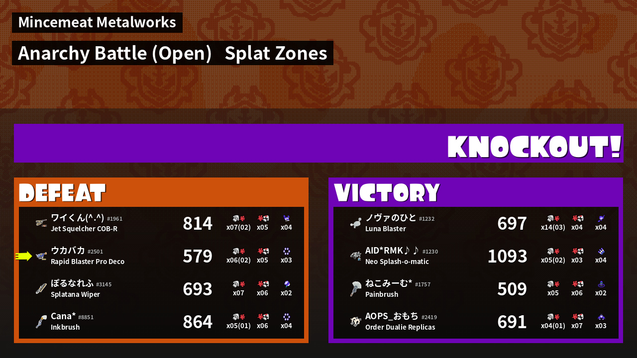 | Mode | Splat Zones - Anarchy Battle (Open) | ||