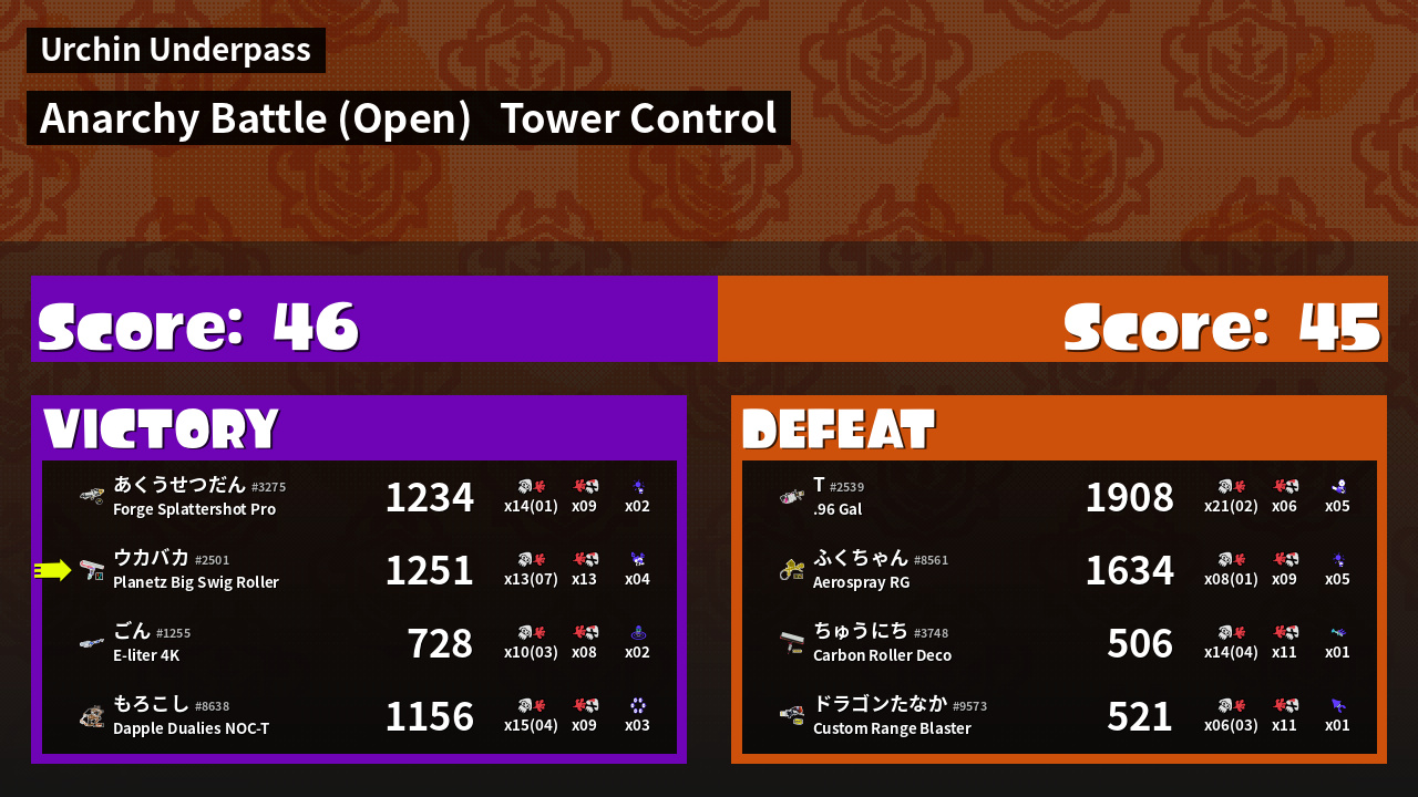 | Mode | Tower Control - Anarchy Battle (Open) | ||