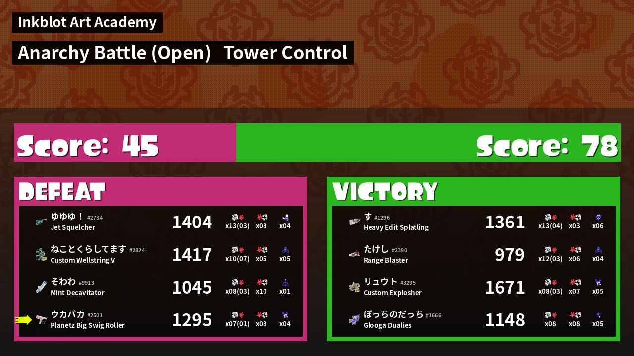 | Mode | Tower Control - Anarchy Battle (Open) | ||