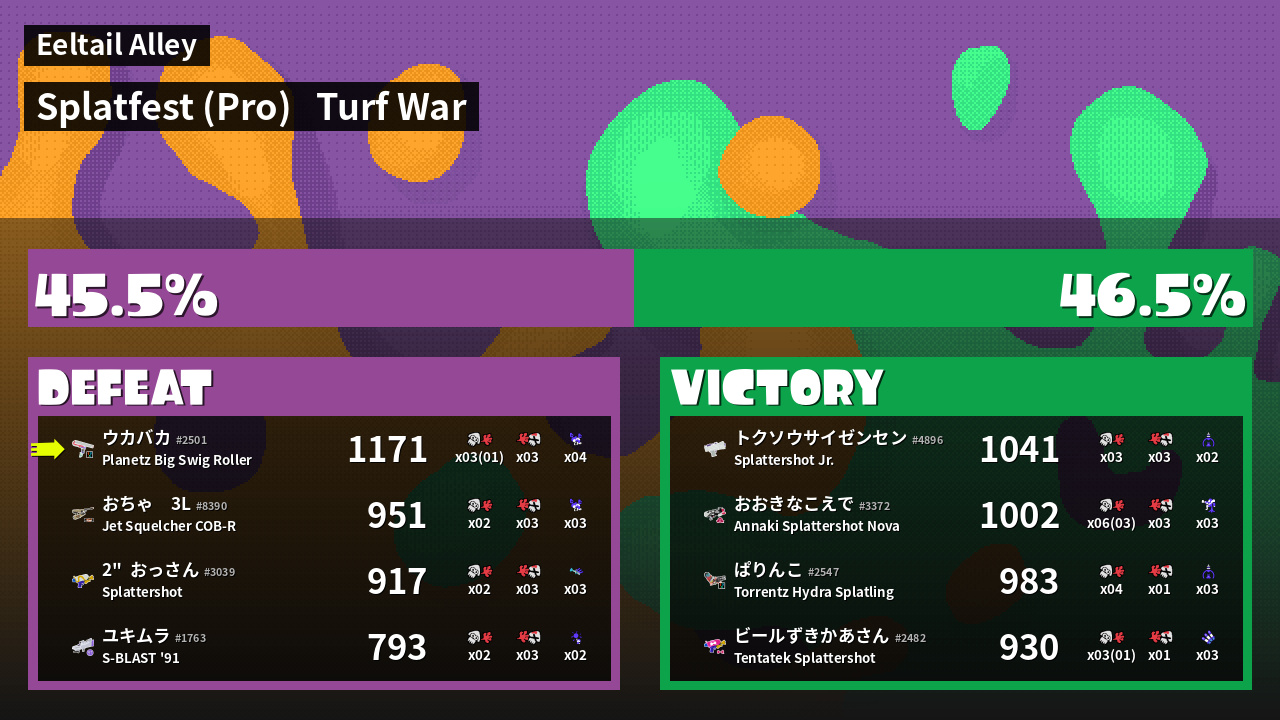 | Mode | Turf War - Splatfest (Pro) | ||