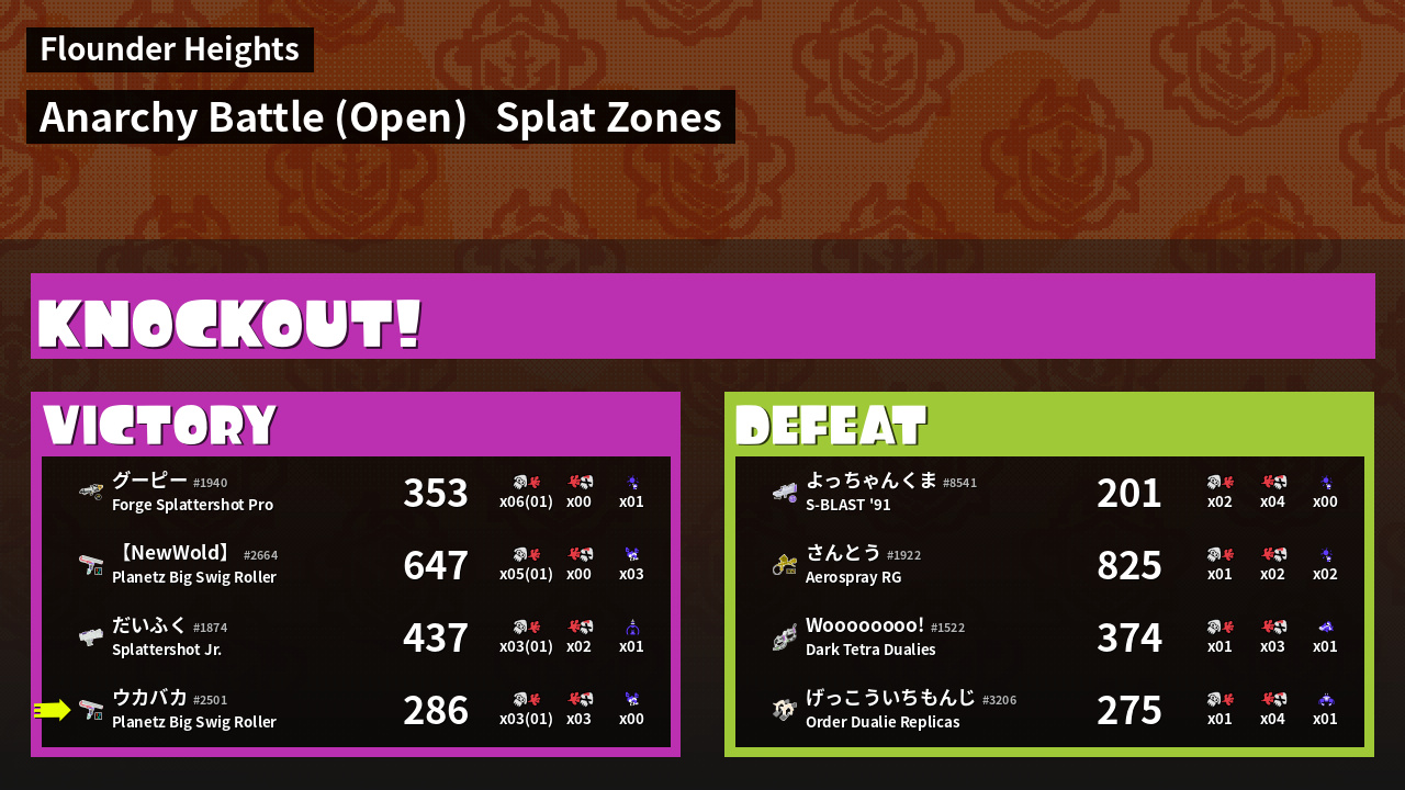 | Mode | Splat Zones - Anarchy Battle (Open) | ||