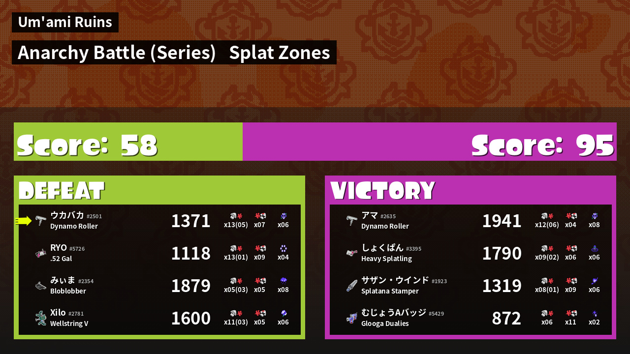 | Mode | Splat Zones - Anarchy Battle (Series) | ||