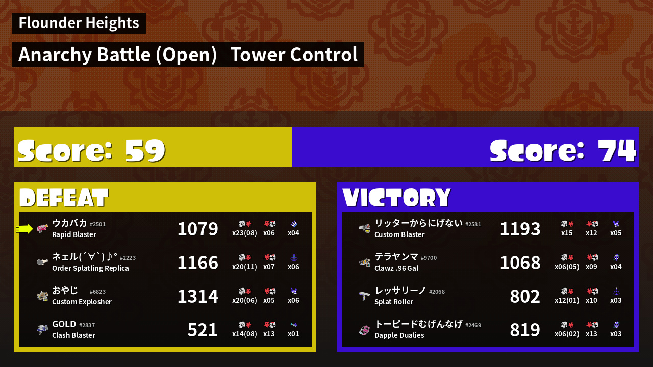 | Mode | Tower Control - Anarchy Battle (Open) | ||