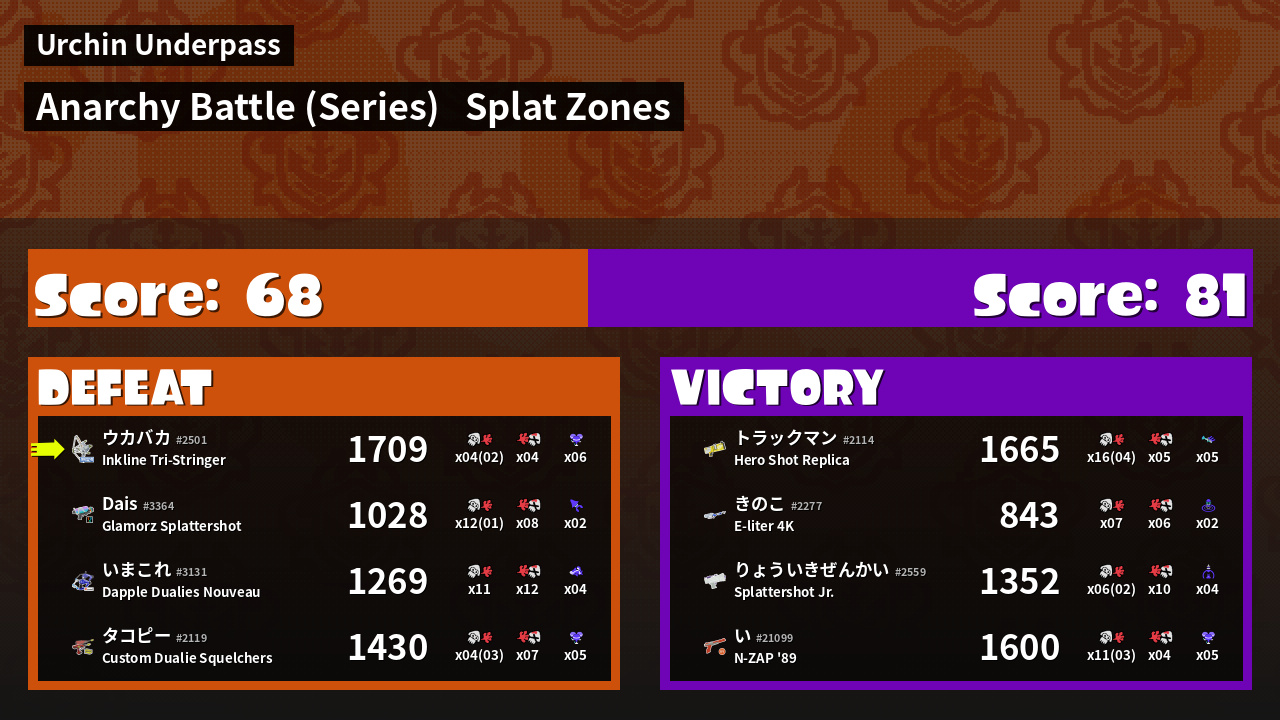 | Mode | Splat Zones - Anarchy Battle (Series) | ||