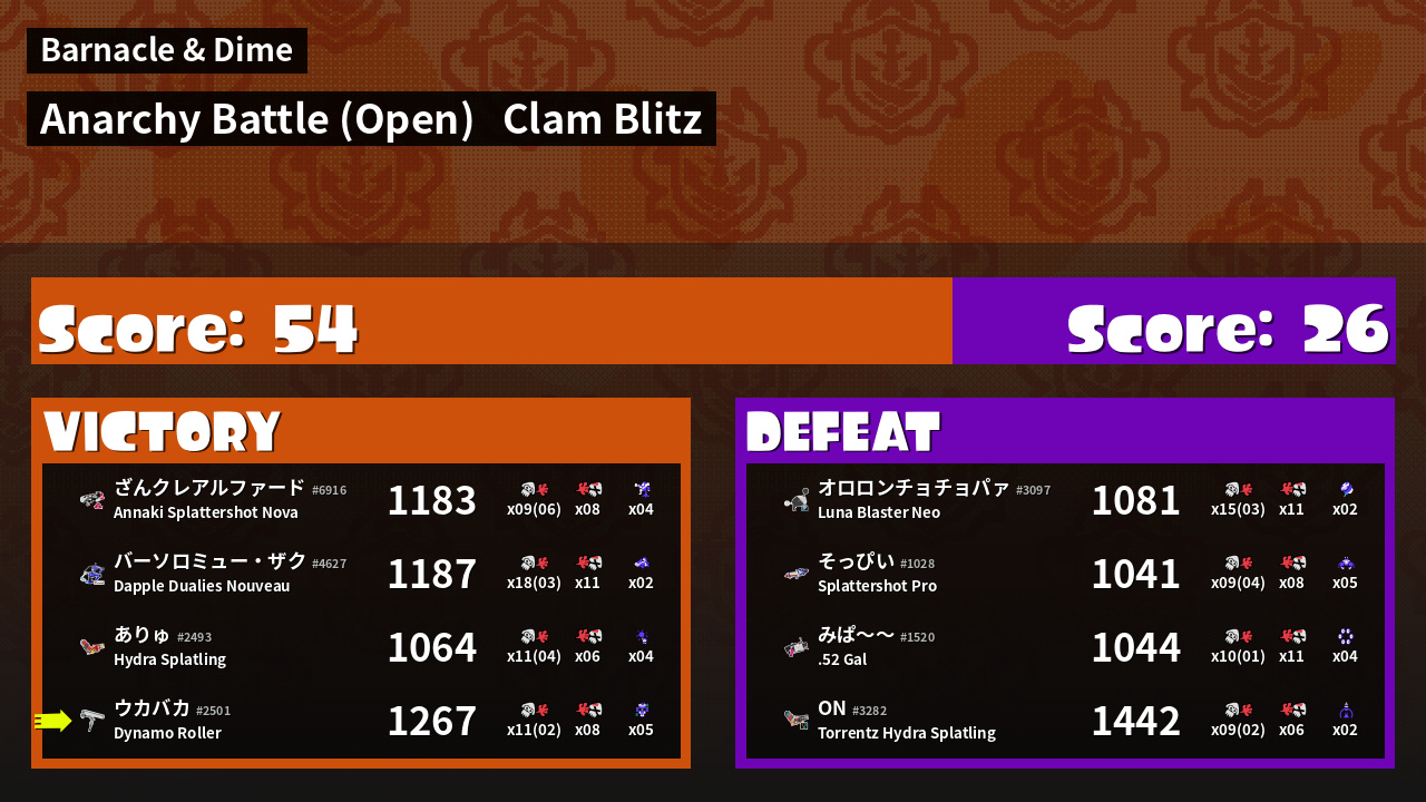 | Mode | Clam Blitz - Anarchy Battle (Open) | ||