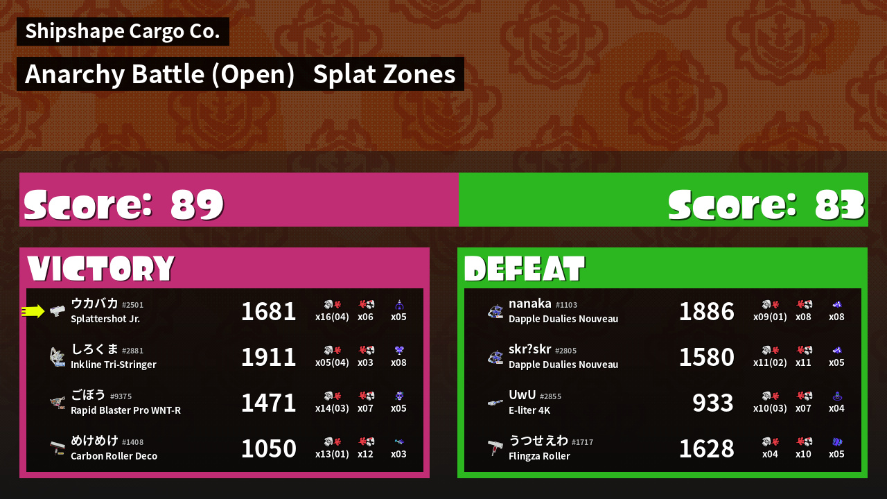 | Mode | Splat Zones - Anarchy Battle (Open) | ||