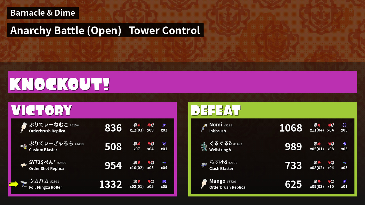 Name | Weapon | Inked | ![]() |