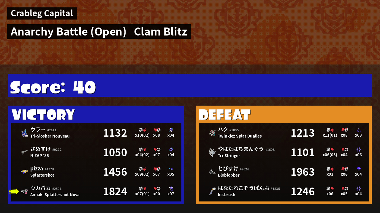 | Mode | Clam Blitz - Anarchy Battle (Open) | ||