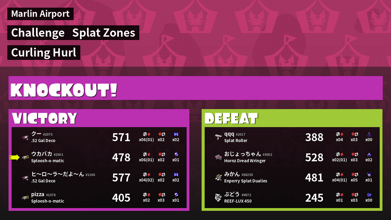 | Medals | #1 Overall Splatter #1 Splat Zone Guard #1 Enemy Splatter | ||