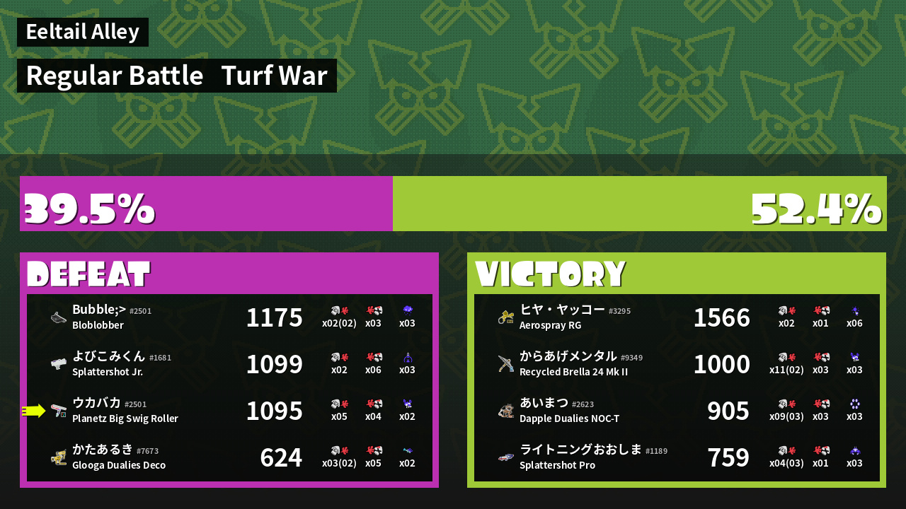 | 敏銳的療癒系吉祥物  よびこみくん #1681 |  Splattershot Jr.                    | 1,099 | 2 + 0 | 6 | 0.33 |  3 | |