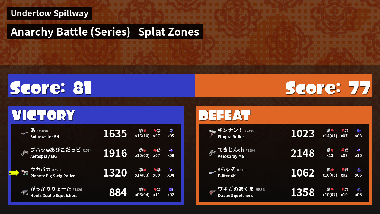 | Mode | Splat Zones - Anarchy Battle (Series) | ||