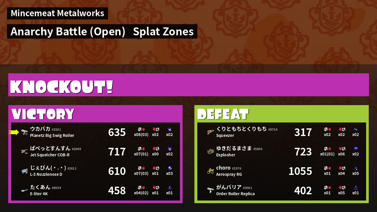 | Mode | Splat Zones - Anarchy Battle (Open) | ||