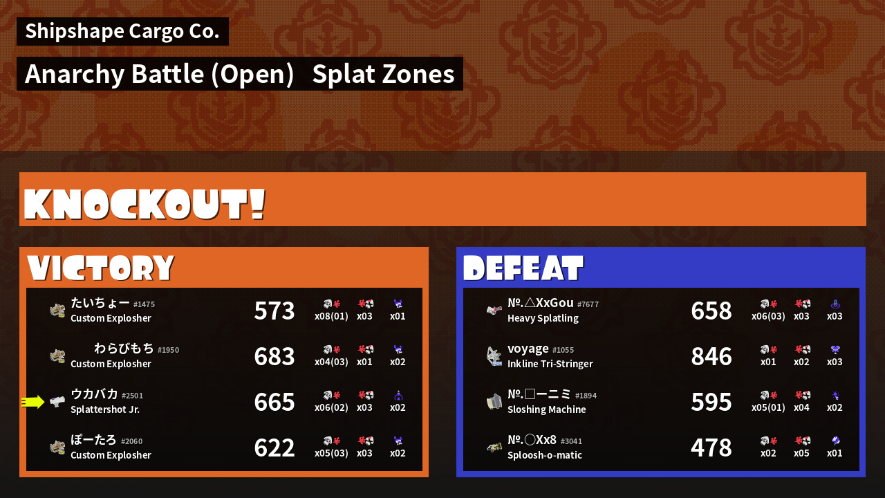 | Mode | Splat Zones - Anarchy Battle (Open) | ||