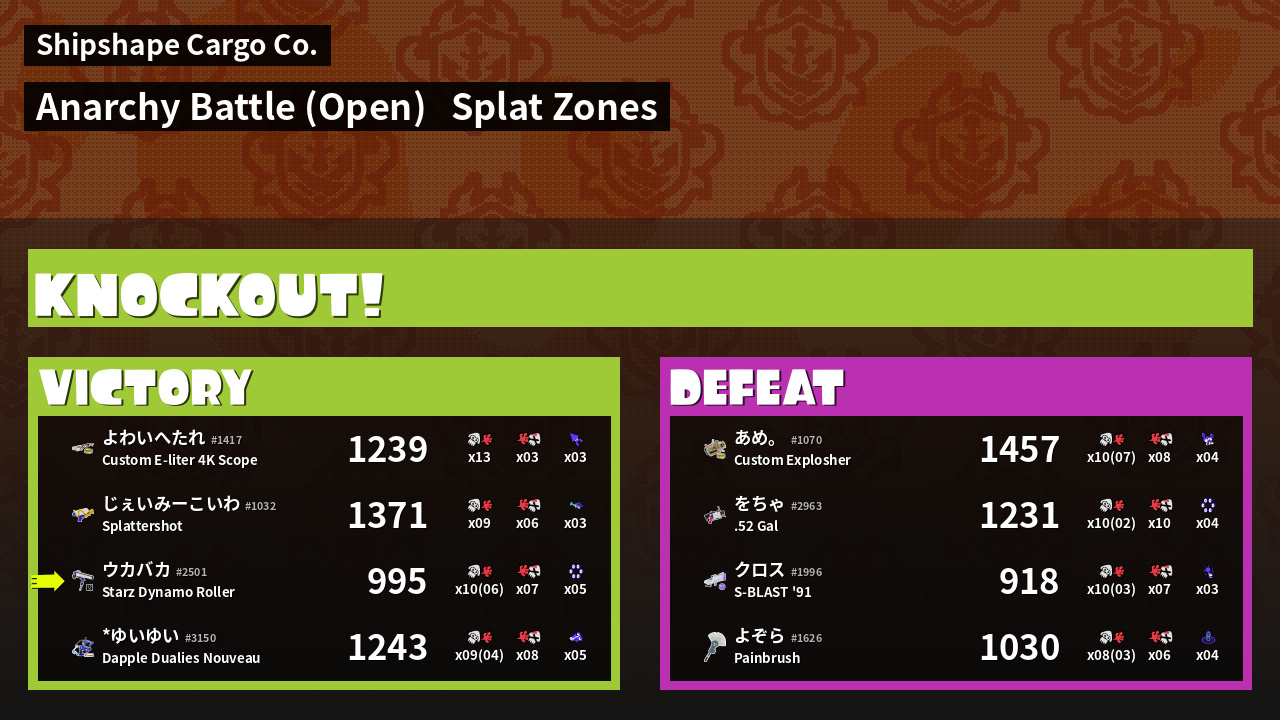 | Mode | Splat Zones - Anarchy Battle (Open) | ||