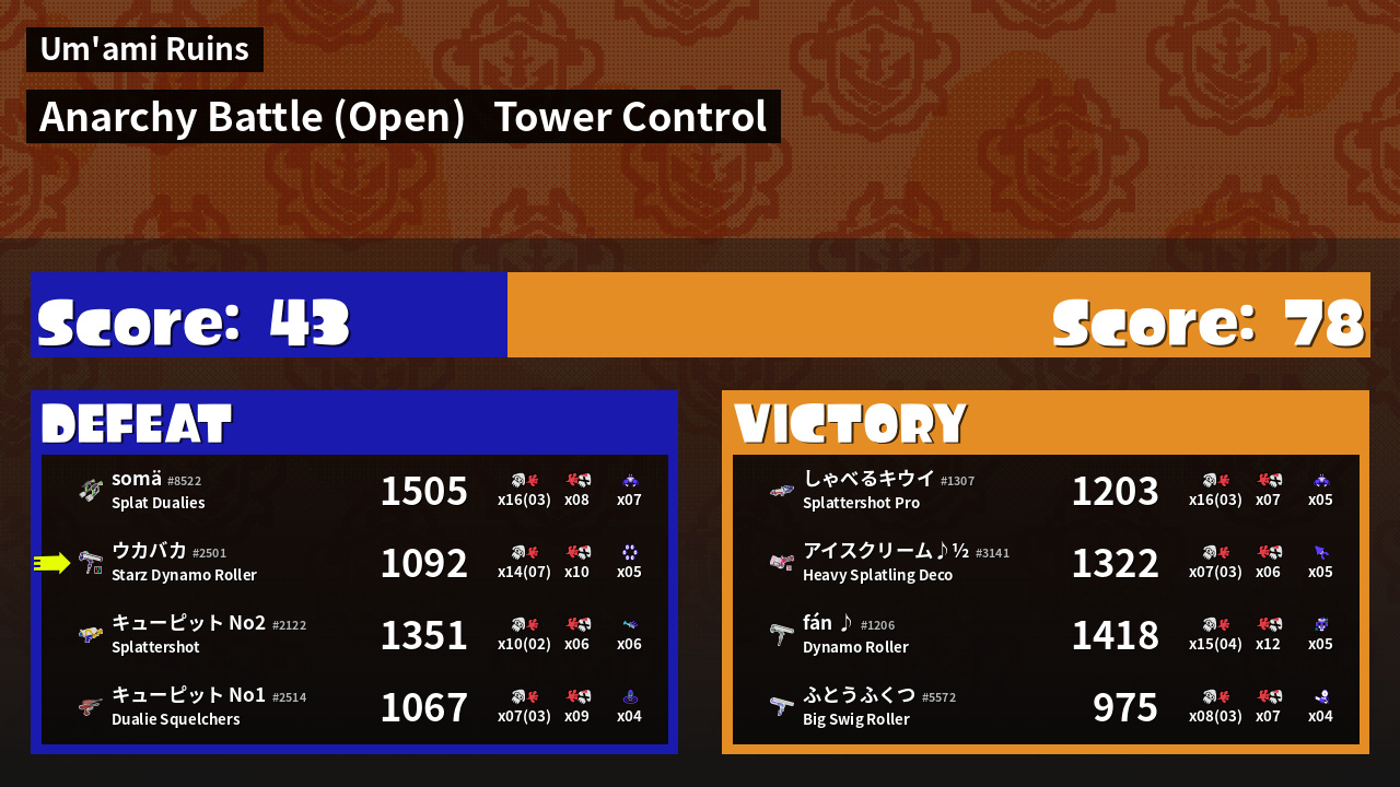 | Mode | Tower Control - Anarchy Battle (Open) | ||
