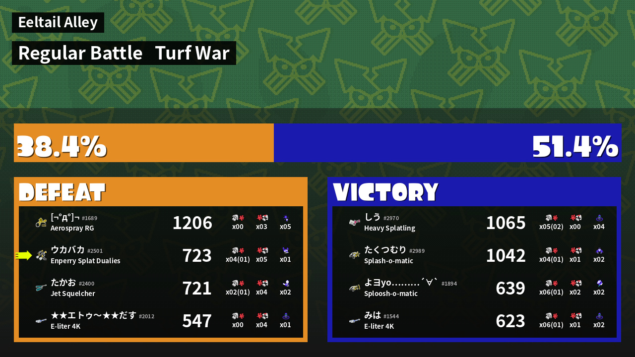 | Weapon | Enperry Splat Dualies ( Curling Bomb / Triple Splashdown) | ||