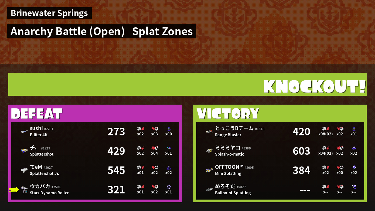 | Mode | Splat Zones - Anarchy Battle (Open) | ||