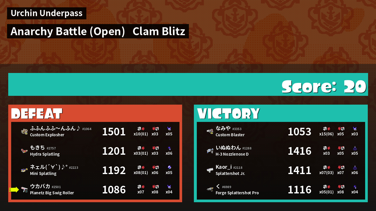 | Mode | Clam Blitz - Anarchy Battle (Open) | ||